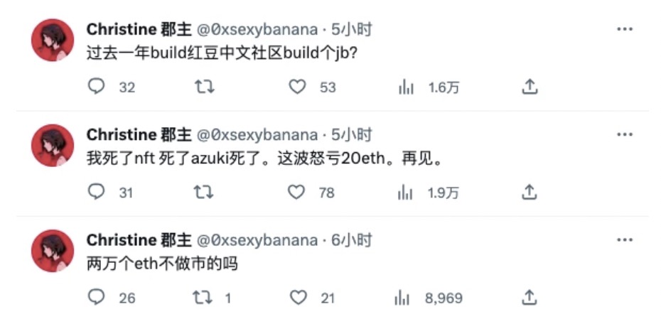 凭借着优良的画风,Azuki 在 NFT 的上一个时代曾吸引了一批忠实的社区用户,正是这些用户将 Azuki 推到了如今的高度,但现在,Azuki 是该想想要怎么去安抚这些受伤的“家人们”了。