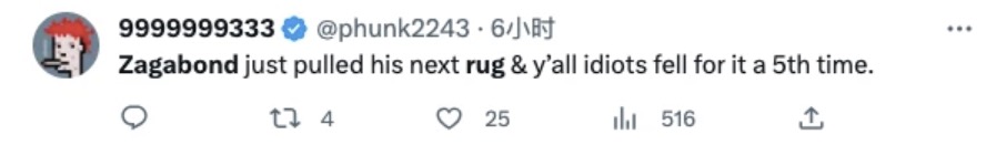还有用户翻起了老底,称有过两次 rug 历史的 Azuki 创始人 ZAGABOND.ETH “重操起了旧业”。