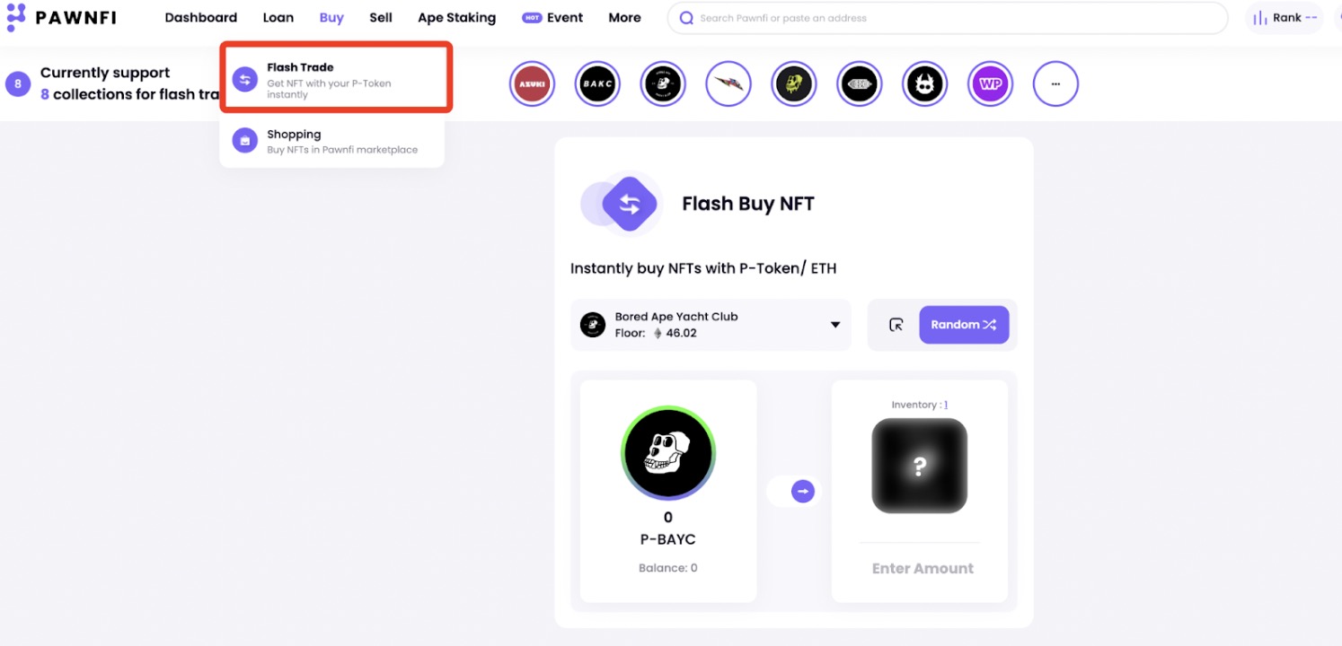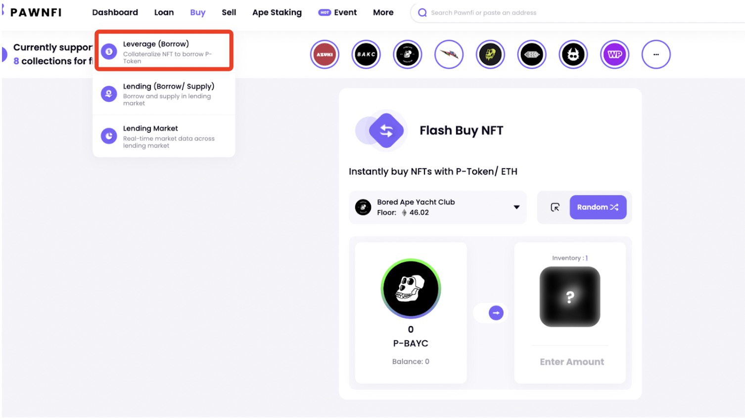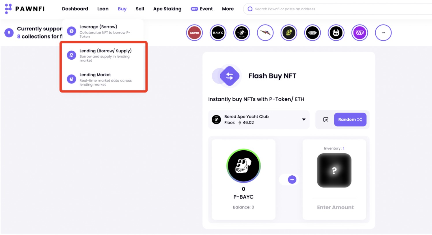 下面通过体验PawnFi平台的功能感受下这个平台的创新机制。