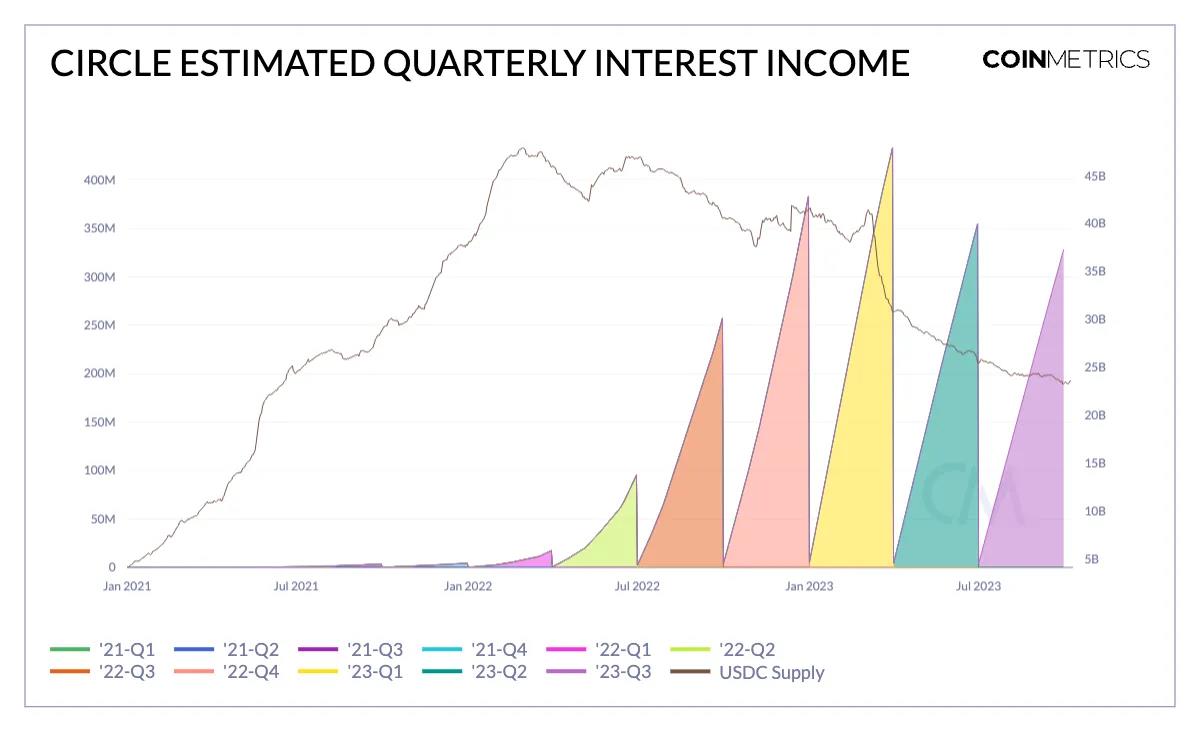 2023 年 USDC 供应量的剧烈波动,包括 SVB 危机的后果和监管审查的加剧,为业务带来了充满挑战的环境。 尽管其供应量显着下降,但 Circle 已经成功利用完全相同的利率动态来提振其业务运营。 不断变化的宏观经济条件和不断发展的稳定币格局,以收益稳定币为代表的替代方案凸显了适应性和创新需求。 Circle 与 Coinbase 的战略合作伙伴关系,后者为 USDC 提供有竞争力的回报,证明在这种快速发展的环境中采取积极措施的必要性。 在 Circle 考虑上市之际,其在顺利渡过这些动荡的能力,将证明其商业头脑和对数字化货币未来的愿景。