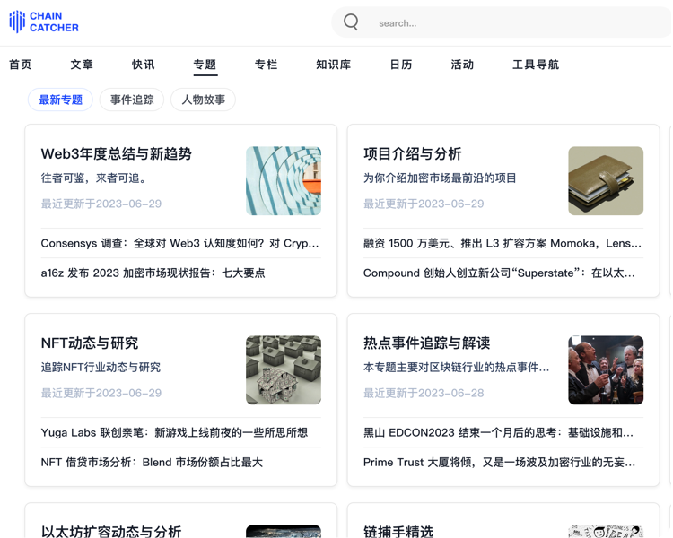至今,ChainCatcher 已产出数千篇深度文章,率先对交易挖矿、交易所竞争、分红与销毁、链上治理、稳定币、加密风投等行业重要话题输出了系统性的研究内容,其较多研究结果被包括《中国企业家》、36Kr、人民创投等权威媒体引用或转载。
